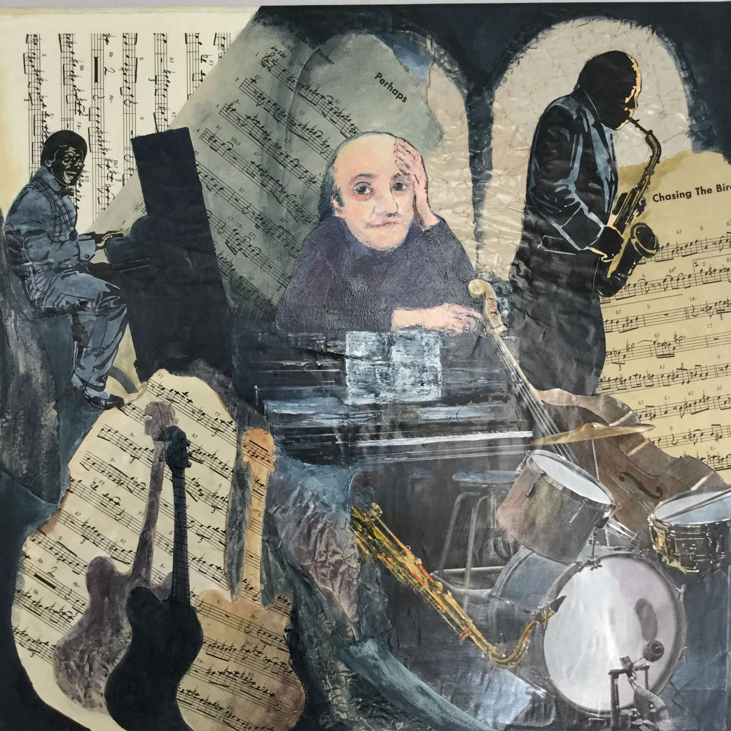 Acrylique à la brosse, collages, sur toile 60x60cm, livrée avec facture et certificat d’authenticité.